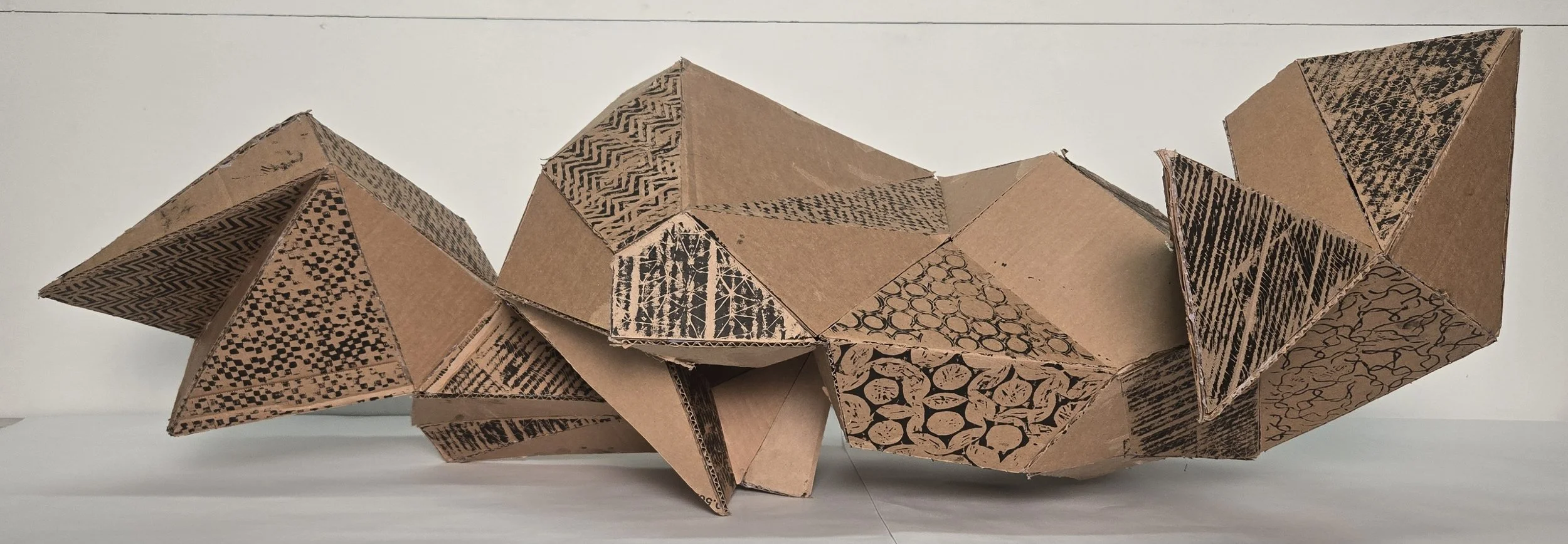From Frustration to Fuel, 2025, Linocut on Cardboard, 45x25x15